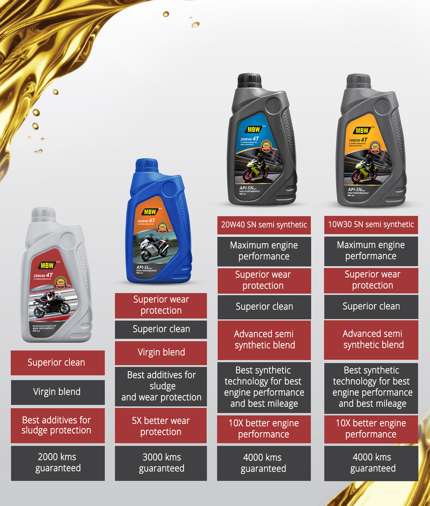 MBW Engine Oil is formulated to provide superior lubrication and protection for your vehicle’s engine. Designed to reduce friction, prevent wear, and optimize engine performance, MBW Engine Oil helps keep your engine running smoothly and efficiently. With excellent heat resistance and sludge control, it ensures long-lasting protection in various driving conditions, extending the life of your engine.